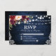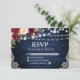 Rustic Wedding Blue Wood String Lights Lace Watercolor Burgundy Floral RSVP Card