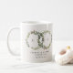Rustikale Aquarell Blumenkranz Monogramm Hochzeit speichern das Datum Geschenk Tasse. Mit schönen Aquarellfarben Details und Eleganz bekommen wir angeschlagenen Skripttext. Diese moderne Hochzeitsfeier lädt zum Set des Stils für Ihren großen Tag ein.