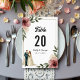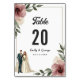 Diese elegante, Aquarellblütenhochzeit-Tischnummer eignet sich ideal für eine moderne Hochzeit. Das romantische Design besticht durch einen eleganten, floralen Aquarellrahmen mit einer Braut- und Bräutigrade und einer schwarzen Kalligraphie auf weißem Hintergrund.
