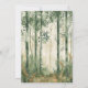 Eine rustikale Waldlandschaft in Grün- und Goldtönen bildet den Hintergrund für den kohlegrauen Text auf einem weißen rechteckigen Bildschirm. Die Waldlandszene wird auf der Rückseite der Karte wiederholt.