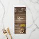 Rustikale Hochzeit mit Holzfass und Sonnenblumen - Menükarte