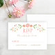 Rustikale, schicke Hochzeitskarten mit RSVP-Blume und hübschem Pfirsich, Rosa, Korallen und Nektarinen-Orangen-, weiche grüne botanische Blätter mit handgezeichnet Aussehen.
