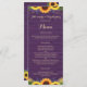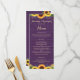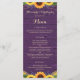 Dieses rustikale Landdesign besticht durch goldene Saitenlichter und Spitzen, Sonnenblumen und Lavendelsprigs vor einem lila Holzhintergrund. Der Text mit anpassbaren Braut- und Bräutigam-Namen und Veranstaltungsdetails erscheint in blassem Gold in beliebter Schrift- und Serifentypografie. Sie können dieses Menü für Ihre eigene Hochzeit personalisieren, indem Sie den Text in der Vorlage ändern.