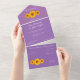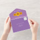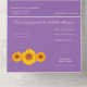 Dieses romantische und rustikale All-in-One Wedding Invitation verbindet auf kunstvolle Weise zeitlosen Charme mit ländlicher Eleganz. Set vor einem reichen lila Hintergrund und mit einem zarten Trio von Sonnenblumenbildern von Alma Wad geschmückt, erinnert es an eine ruhige Mischung aus Romantik und Naturfreundlichkeit. Das Design verbindet kursive Schrift mit klassischer Serifentypografie und schafft so die perfekte Harmonie zwischen Launen und Tradition. Diese Einladung bietet Komfort und Stil. Geniessen Sie sie, um sie in ein selbst-mailendes Werk einzuklappen - ohne Umschlag. Dieses individuelle Design ist perfekt für Hochzeiten mit Sonnenblumen, Gartenzeremonien oder Vintag inspiriert Feiern geeignet und zeichnet sich durch seine natürliche Schönheit und eine herzliche persönliche Touch aus.