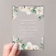 Diese rustikale Hochzeitseinladung besticht durch einen Vintagen Stil und eine wunderschöne, weiße, blumengeschmückte Aquarellwand mit eleganter klassischer Typografie auf luxuriösem Acryl. Laden Sie diese romantische Hochzeitskollektion für eine Foto-Version dieser Karte ein und koordinieren Sie elegantes Hochzeitszubehör.