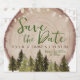 Diese wunderschönen rustikalen Save the Date glitzernden Weinetiketten werden Ihren Gästen und Hochzeitsfeiern einen Eindruck vermitteln. Das wunderschöne Aquarellbild zeigt eine rustikale Holzscheibe, die mit Licht im Freien und Aquarellwald in verschiedenen eleganten Jägertönen, dunklem Schokoladenbraun und Tanschattierungen geschichtet ist. Klicken Sie auf das Tool Bearbeiten mit dem Design, um weitere Änderungen an diesem Schaumweinetikett vorzunehmen.