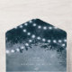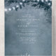 Mit dieser rustikalen Einladung schaffen Sie eine romantische und bezaubernde Atmosphäre für Ihre Hochzeit. Dieses Design mit einem marineblauen Hintergrund mit silberfarbenen Bäumen und zwielichtigen Lichtern ist ideal für Paare, die im Freien oder im Wald eine Liebe feiern. Das subtile Licht an der dunklen Kulisse erinnert an ein gemütliches und gemütliches Ambiente, das sich ideal für Hochzeiten im Abend eignet. Vollkommen mit eleganten Schriftzeichen, erschließt diese Einladung wunderbar den Zauber der Natur.
