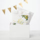 Dieses Design zeichnet sich durch eine elegante und dennoch einfache Anordnung der personalisierten Initialen der Braut und des Bräutigams aus, gerahmt durch Vintage Illustrationen von Zitrusfrüchten und Zitronen. Der Text wird oben auf die Initialen der Braut und des Bräutigams gesetzt, die in gelber Farbtypografie dargestellt sind. Dieses gelbe, weiße und grüne Design ist einfach, aber elegant in jeder Hinsicht. Die Kombination von Farben schafft einen eleganten, trendigen und schicken Stil. Elegantes Hochzeitsgunst im Taschendesign mit modernen Elementen. Auch die passenden Hochzeitseinladungen und die Stationery-Artikel sind verfügbar.
