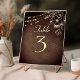 Mit dieser eleganten Tischnummer-Karte mit reicher Holzkornstruktur, leuchtenden Saitenlichtern und zarten goldenen Blumenakzenten können Sie Ihre rustikale Hochzeit im Herbst in Set nehmen. Dieses Design eignet sich ideal für Stallhochzeiten, Empfänge im Wald oder gemütliche Candlelit-Feste. Freuen Sie sich auf romantischen Charme und ländliche Eleganz. Personalisieren Sie die Tischnummer und andere Details zum Anzug Ihres großen Tages.