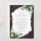 Einladend zu Ihrer rustikalen Hochzeitsfeier im Grünen mit diesen botanischen Einladungen für Hochzeiten, die die Details der Hochzeit in einem Rahmen, der mit Waterfarben, grünen Zweigen vor einem rustikalen Holz Hintergrund verziert.