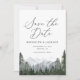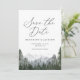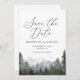 Laden Sie Freunde und Familie ein, um ihre Kalender in Erwartung Ihrer Hochzeitsfeier mit dieser eleganten Save the Date, mit Aquarellgebirge und Kiefernbäumen.