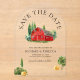 Elegante Farm Thema Hochzeit Save the Date Karte mit einem schönen roten Scheunenhaus.