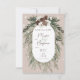 Dieses Design ist mit einem rustikalen grünen Kiefer und einem pineconfarbenen Bouquet auf einem weichen beigen Hintergrund mit weißen Blume gestaltet. Es wird durch ein weißes, glänzendes Overlay hervorgehoben, um den Zauber der schönen Winterferien zu veranschaulichen. Ideal für eine Weihnachts- oder Winterhochzeit. Diese Karte ist Teil der rustikalen Tan Pine Winter Sparkle Wedding Suite, die von Simply Farmhouse Press kreiert wurde.