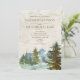 Diese rustikale Hochzeitseinladung in den Bergwäldern besticht durch eine wunderschöne Aquarelllandschaft mit schneebedeckten Bergen hinter einem Imitat, der auf einem Vogelbellhintergrund steht. Auf der Rückseite der Einladung befinden sich immergrüne Pinienbäume, die über die Birkenrinde verteilt sind, um das Aussehen zu vervollständigen. Copyright Elegant Invites, alle Rechte vorbehalten.