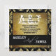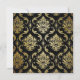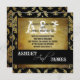 Rustikales Hochzeitsempfang mit schwarzem Damast und Monogramm auf einem Vintagen Teefleckpapier-Foto-Effekt.