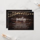 Markieren Sie den Anfang Ihres Lebens mit rustikaler Eleganz mit unserer Hütte- und Dorfsaitenbeleuchtung dunkelbraunen Hintergrund themed, Hochzeitsfeier Einladungskarte, "Happily Ever After Party". Diese Einladung eignet sich perfekt für Paare, die ihren fröhlichen Anlass ausdehnen und mit einem Hauch von Verspieltheit die Bühne für eine unvergessliche Veranstaltung geben. Das zeitlose Design des Drehbuchs verleiht Ihren Festlichkeiten eine Touch raffinierten Charmes. Diese von TeeshaDerrick entworfene Einladung verspricht, Ihre Liebe schön zu erfassen.