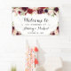 Rustikales Banner für die Hochzeitsfeier in Burgund. (1) Für weitere Anpassungen klicken Sie bitte auf den Link "Weiter anpassen" und verwenden Sie unser Designwerkzeug, um diese Vorlage zu ändern. (2) Wenn Sie Hilfe oder passende Artikel benötigen, kontaktieren Sie mich bitte.