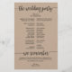 Rustikale Hochzeitsfeier Programm Brown Kraft Card. Passen Sie Ihre Daten an.