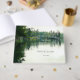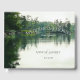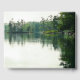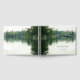 Das Gästebuch der rustikalen Hochzeitssalon bietet einen landschaftlichen Blick auf das Wasser an einem ruhigen Tag mit bewölktem Himmel und winzigen Erinnerungen auf ansonsten ruhigem Wasser, das die Bäume, Immergrüne und Felsstrukturen in der Ferne reflektiert | erstellt aus meinem eigenen Foto und digital mit einem leichten Aquarelleffekt - Teil der Mountain Lake Rustic Wedding Collection von katz_d_zynes >> https://www.zazzle.com/collections/119499271518309609