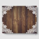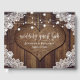 Elegantes rustikales Gästebuch, inspiriert von einem Knisternherz auf einem Stallholzhintergrund mit weißem Blumengeflecht und Lichtern der Saiten.