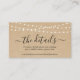 Rustic Wedding Details Website Umschließungskarte - Romantische Märchenleuchten auf einem kraftvollen Hintergrund, um Ihre UAWG- und Hochzeitsdetails zu kommunizieren.