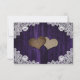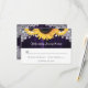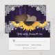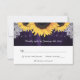 Diese lila und sonnenblühenden RSVP-Karten sind mit Sonnenblumenkerzen auf einem Holzboden versehen, der mit weißen Blumenspitzen und Lichtern an der Saite geschmückt ist. Perfektes Kartendesign für Ihre lila rustikale Hochzeit inspiriert von Sonnenblumen Blume. Matching-Elemente verfügbar.