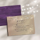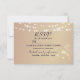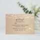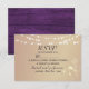 Elegantes Land, rustikale Rose Gold und lila Holzverheiratungskarte mit Lichtern aus der Saite, vergoldete goldene Blumenspitze und einfache Kalligraphie-Schrift.