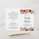 Dieses elegante rustikale Hochzeitsgeschoss-Design besticht durch hübsche Blume im Herbst, darunter Rose, Dahlien, Blume und Grünpflanzen, in einer herrlichen Herbstpalette aus bordeauxrot, goldgelb, pfirsichfarben, orange, rot und grün. Ideal für eine Sommer- oder Herbstveranstaltung. Personalisieren Sie den stylischen dunkelgrauen Text auf beiden Seiten des Blattes mit Ihrer eigenen Zeremonie, Hochzeitsfeier, und danken Sie Ihnen den Text der Nachricht. Hinweis: Diese Programme kommen flach an und müssen für eine Mittelfalte gefaltet werden.