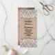 Elegantes Hochzeitsprogramm mit rustikalem Background und weißen Spitzen Akzenten. Perfektes Programm-Design für rustikale Hochzeitsthemen.