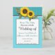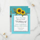 Rustikales Aquamarines Holz, Goldene Sonnenblume bezauberndes modernes Land Hochzeit Einladung, Perfekt für die diesjährigen Hochzeiten