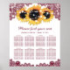 Vervollständigen Sie Ihr weinrosiges rustikales Land, Ihren Garten, Ihren Hinterhof oder Ihre Stallenhochzeit mit dieser bordeauxfarbenen rustikalen Chic-Sitzkarte für 8 Tische mit Sonnenblumenblumen, Lichtern und Blumenspitzen. Matching-Elemente verfügbar.