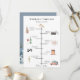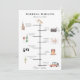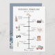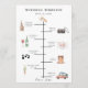 Rustikale farbenfrohe Hochzeitsszenarien, Timeline-Programm. Auf der Karte finden Sie Kirche, Kamera, Glasflasche, Teller, Musiknoten, Kuchen, Bouquet und Retro-Automobil. Die Rückseite der Karte weist Aquarellfarben-Blume in staubblauen Farbtönen mit passender Hintergrundfarbe auf. Text Schriftart Stil und Farbe können angepasst werden.