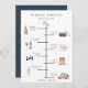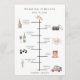 Rustikale farbenfrohe Hochzeitsszenarien, Timeline-Programm. Auf der Karte finden Sie Kirche, Kamera, Glasflasche, Teller, Musiknoten, Kuchen, Bouquet und Retro-Automobil. Die Hintergrundfarbe in abgestuftem Marineblau kann angepasst werden. Schriftart und Farbe des Textes können ebenfalls angepasst werden.