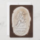 Rustikale Hochzeitsholzschnitt Save the Date einladen. Mit schönen Aquarelldetails. Diese moderne Hochzeitsfeier lädt zum Set des Stils für Ihren großen Tag ein.