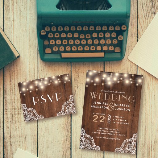 Rustikale Holz-Streichelleuchten und Spitzen | UAW RSVP Karte