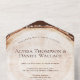 Mit einem holzgeschnittenen Schnitt und einem rustikalen Hintergrund verleiht diese Einladung mit ihrem Baumrink-Design ein rustikales Ambiente. Personalisieren Sie diese einmalige All-in-One-Einladung, die eine leicht zu bedienende, abreißende UAWG-Postkarte enthält. Charmant und unerwartet, erfreuen Ihre Gäste und Set den Ton für Ihre viel erwartete Hochzeit.