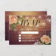 RSVP Reply Card Vorlagen Hochzeit - Elegantes Script mit Peach White Roses Floral und String Lights auf rustikalem Holzhintergrund. Ein perfektes Design für Ihren großen Tag! Alle Textstile, Farben, Größen können an Ihre Bedürfnisse angepasst werden.