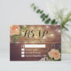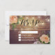RSVP Reply Card Vorlagen Hochzeit - Elegantes Script mit Peach White Roses Floral und String Lights auf rustikalem Holzhintergrund. Ein perfektes Design für Ihren großen Tag! Alle Textstile, Farben, Größen können an Ihre Bedürfnisse angepasst werden.