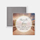 Wir danken Ihnen Magneten mit einem landschaftlichen Foto. Eine Holzbrücke führt zu einem Weg, der von farbenwechselnden Waldbäumen umgeben ist.