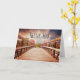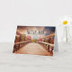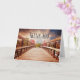 Vielen Dank, dass Sie die Karte mit einer landschaftlich aussehenden Holzbrücke begrüßen, die in einen von Waldbäumen umgebenen Weg führt, der sich farblich ändert.