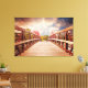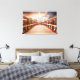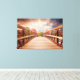 Leinwand mit einem landschaftlichen Foto. Eine Holzbrücke führt zu einem Weg, der von farbenwechselnden Waldbäumen umgeben ist.