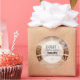 Kerzen oder Seifenaufkleber mit landschaftlichem Foto. Eine Holzbrücke führt zu einem Weg, der von farbenwechselnden Waldbäumen umgeben ist.