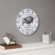 Rustikal weiß gewaschene Scheune Walking Bison Büffel Familiennamen große Uhr für Ihre Hütte, Seehaus, winzige Haus oder jede rustikale Wälder, Wildnis, oder Landschaft. Die Kontraste zwischen Schrift und Serifenschrift verleihen diesem Design ein zeitgenössisches rustikales Ambiente.