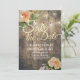 Save the Date Einladungs-Karten-Vorlagen Hochzeit - Imitate Gold Foil-Script mit Peach Weißen Rosen Floral und String Lights auf rustikalem Holz Hintergrund. Ein perfektes Design für Ihren großen Tag! Alle Textstile, Farben, Größen können an Ihre Bedürfnisse angepasst werden.