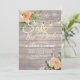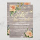 Save the Date Einladungs-Karten-Vorlagen Hochzeit - Imitate Gold Foil-Script mit Peach Weißen Rosen Floral und String Lights auf rustikalem Holz Hintergrund. Ein perfektes Design für Ihren großen Tag! Alle Textstile, Farben, Größen können an Ihre Bedürfnisse angepasst werden.