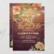 Save the Date Einladungs-Karten-Vorlagen Hochzeit - Imitate Gold Foil-Script mit Peach Weißen Rosen Floral und String Lights auf rustikalem Holz Hintergrund. Ein perfektes Design für Ihren großen Tag! Alle Textstile, Farben, Größen können an Ihre Bedürfnisse angepasst werden.
