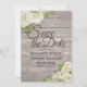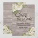 Save the Date Hochzeitskarte Vorlagen - Weiße Rosenblumen und Streichelleuchten auf rustikalem Holzhintergrund. Ein perfektes Design für Ihren großen Tag! Alle Textstile, Farben, Größen können an Ihre Bedürfnisse angepasst werden.