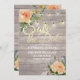 Save the Date Einladungs-Karten-Vorlagen Hochzeit - Imitate Gold Foil-Script mit Peach Weißen Rosen Floral und String Lights auf rustikalem Holz Hintergrund. Ein perfektes Design für Ihren großen Tag! Alle Textstile, Farben, Größen können an Ihre Bedürfnisse angepasst werden.