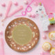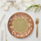 Eine hübsche dekorative, rustikale Lorbeerküste umkreist einen goldenen Rahmen mit Imitaten, der die Namen der glücklichen Paare und ihr Set mit dem besonderen Datum enthält, in einem klassischen, eleganten Text auf Vintagem Holzboden.