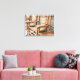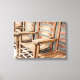 Fügen Sie Ihrem Zimmer eine Touch Komfort mit den charmanten, rustikalen Holzstühlen, die mit gepolsterten Leinwand bedruckt sind. Dieses malerische Bild zeigt ein Foto von alten, verwitterten und abgenutzten braunen Holzstühlen. Ein Sepia-Ton wurde hinzugefügt, um das Zuhause-Gefühl im unteren Bereich zu verstärken.